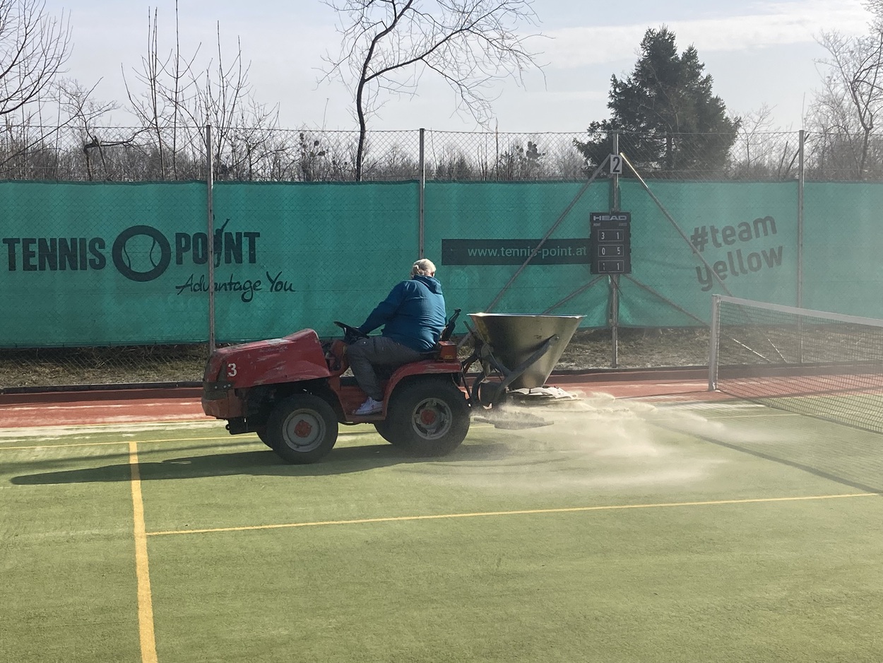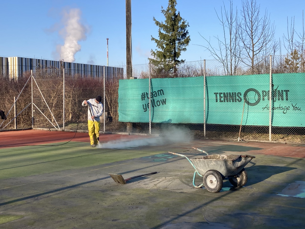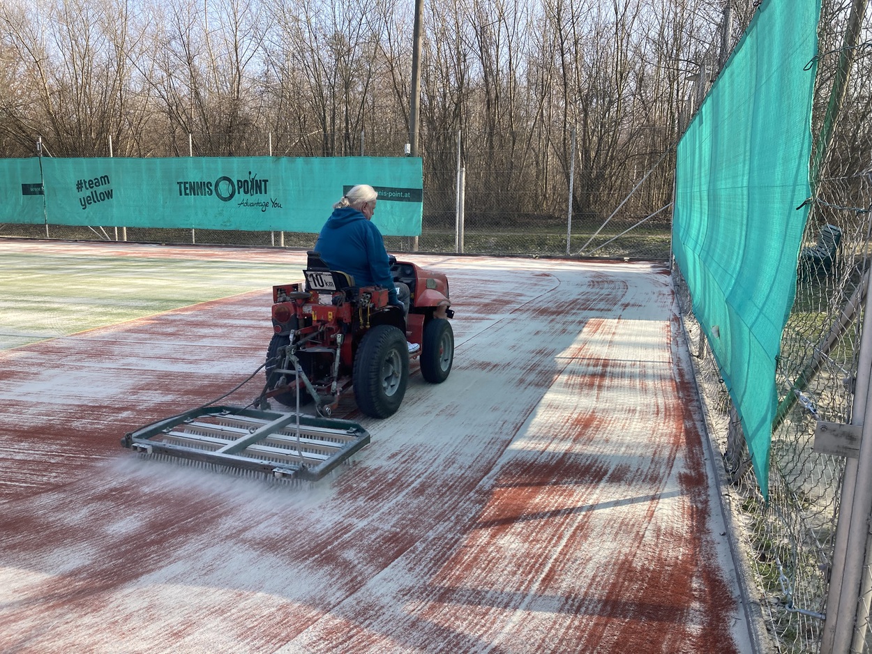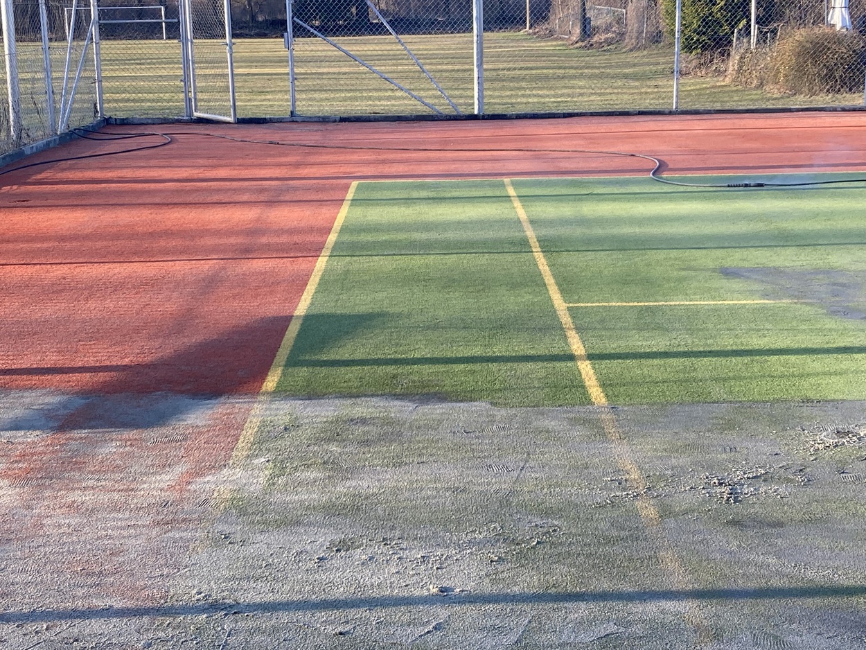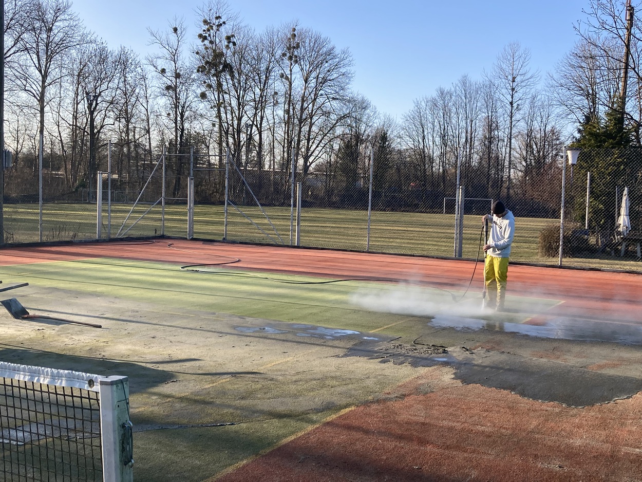 Nach rund 15 Jahren finden aktuell auf unserer Anlage die Reinigungsarbeiten beider Plätzen statt.