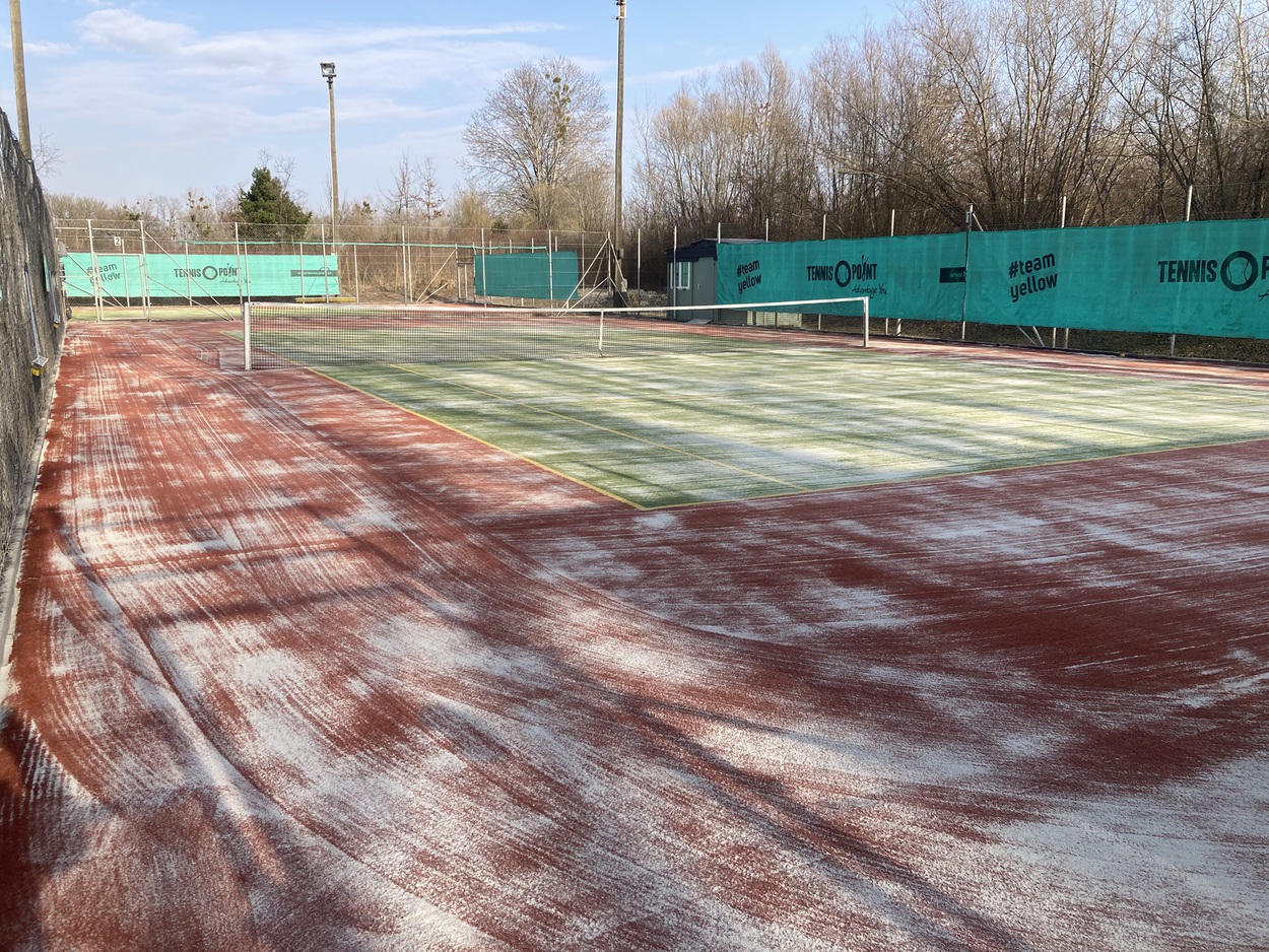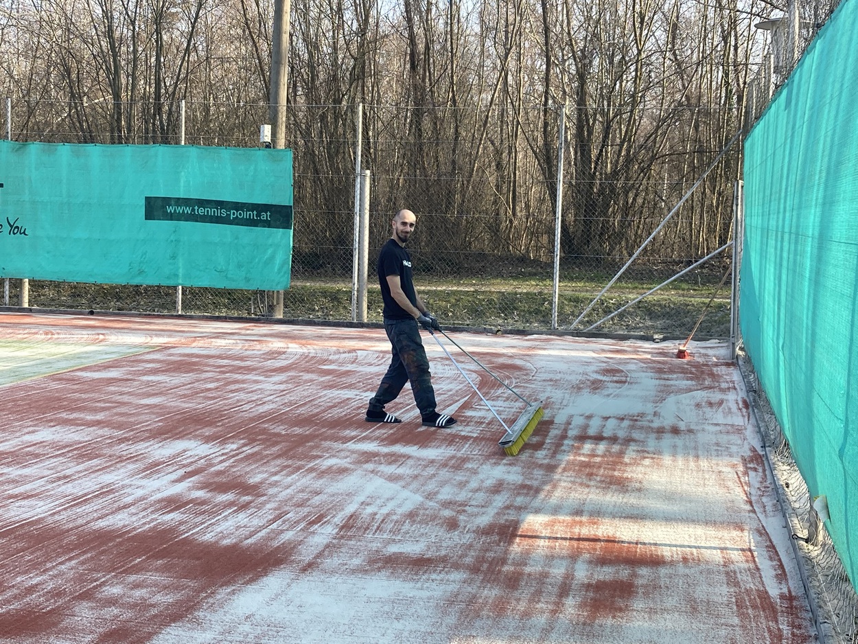 Danach müssen beide Plätze durchgehend trocknen. Anschließend wird neuer Quarzsand eingearbeitet.